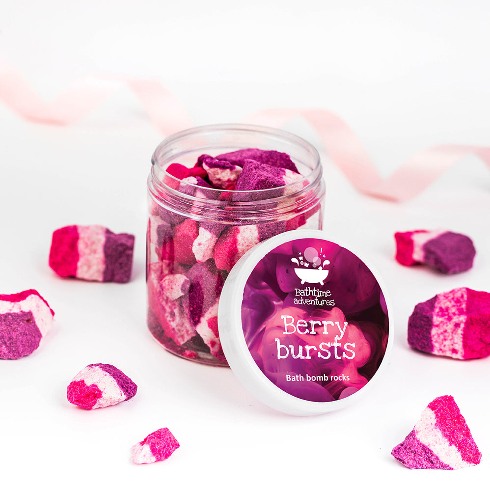 To use, scatter a handful of Berry Bursts into warm water and wait until they have finished fizzing before getting into the bath. Avoid handling to prevent possible transfer of colour to the skin.