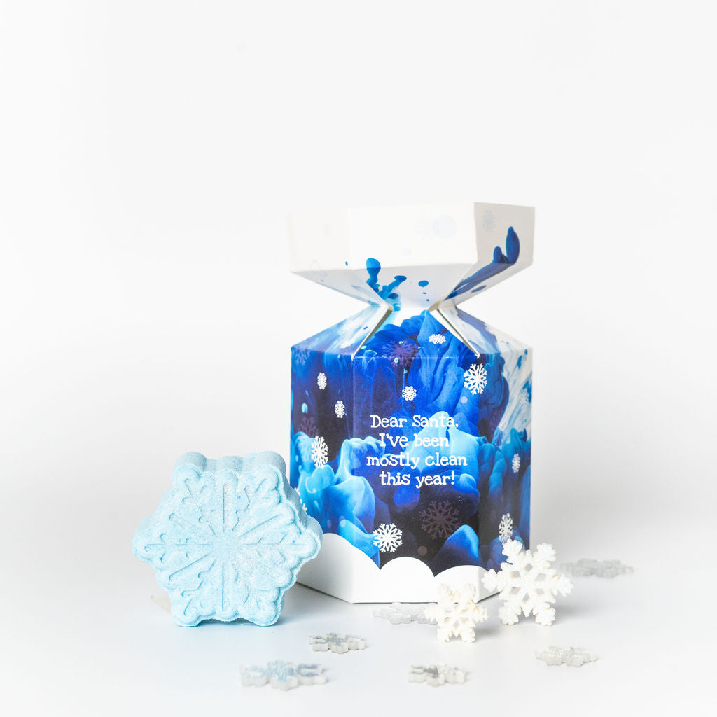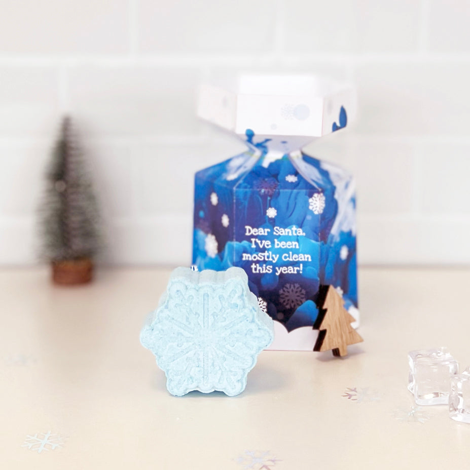 Sparkle and shimmer with every drop! This Snowflake mini bath bomb is the perfect way to add a touch of winter magic to your little one's bath time. As it fizzes, it releases hidden colours and a refreshing, seasonal scent, transforming your bath into a peaceful winter wonderland. Small in size but big on festive fun, it’s the perfect gift for stocking fillers and is packaged in a cute paper house Christmas gift box. Let this little snowflake bring some festive fun to your tub.