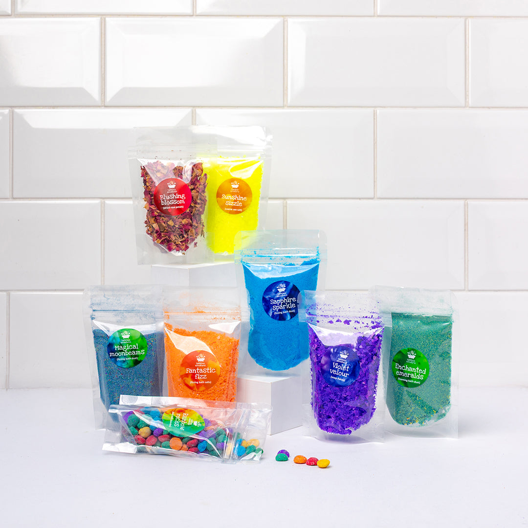 As well as our ‘magic ingredient’ bath rocks and fizzing bath dust we’ve included a range of sensory delights. Each kit is a unique adventure waiting to unfold; It’s playtime like you’ve never seen before, packed with excitement and wonder.